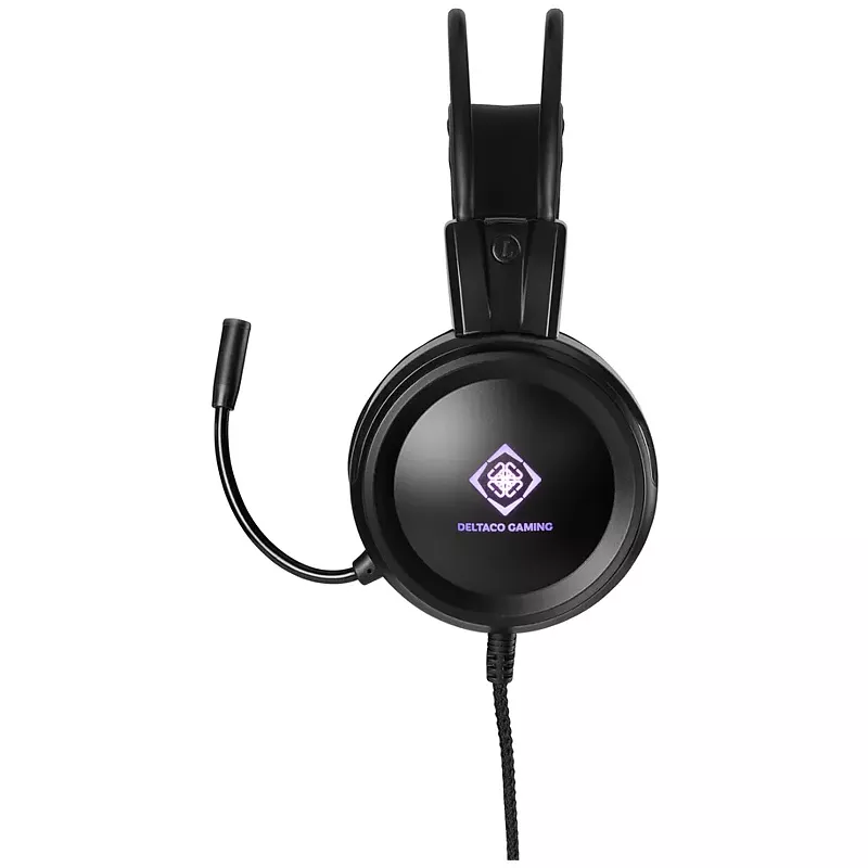 DELTACO GAMING DH110 Gaming-Headset, das für Spiele mit klaren Höhen und sattem Sound geeignet ist, um die Details des Spiels zu unterscheiden. Durch das Ändern der LED-Farbe um die Abdeckungen erhalten Sie einen einzigartigen Look. Die weichen Kissen machen es bequem, während langer Spielesitzungen zu verwenden. Das Headset ist mit einem verstellbaren Kopfbügel und einem flexiblen Mikrofon ausgestattet.