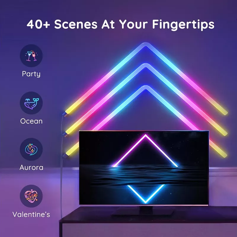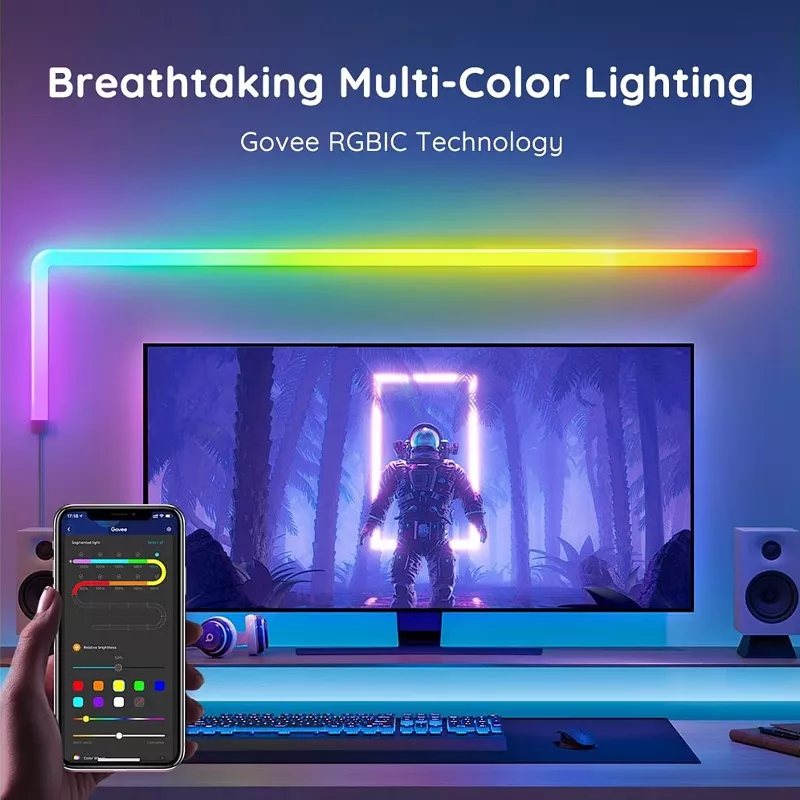 Möchten Sie einen beeindruckenden Spielraum schaffen? Mit bezaubernden Lichteffekten, einem anpassbaren Layout und einem eleganten Finish ist Govee Glide genau das Richtige für Sie. Der perfekte Weg, um jedes Merkmal hervorzuheben, ein bestehendes Farbschema zu ergänzen und Ihr Raumdesign auf eine neue Ebene zu heben.