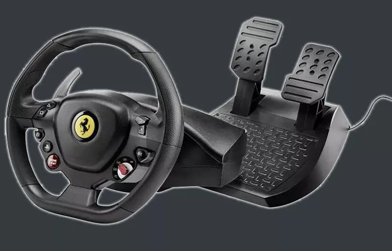 Thrustmaster freut sich besonders, die Replika des einzigartigen Ferrari 488 GTB-Lenkrades im 8:10-Massstab vorstellen zu dürfen, offiziell lizenziert von Ferrari und Playstation 4 + 5. Es wurde speziell entwickelt, um absoluten Realismus in allen Rennspielen mit Lenkradunterstützung für den PC, Playstation 4 und Playstation 5 zu bieten. Ausserdem verfügt dieses brandneue Thrustmaster-Lenkrad über ein grosses Pedalset mit zwei Pedalen.