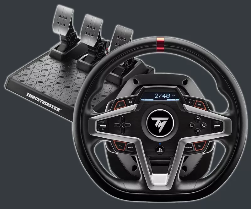 Die GT PRO Edition beinhaltet nebst einem Renn-Lenkrad mit der offiziellen Gran Turismo-Lizenz das T3PA - GT Edition-Pedalset, bestehend aus drei Pedalen mit einem 100% Metallkern. Das Set ist kompatibel mit PlayStation 4, PlayStation 5 und PC sowie mit wechselbaren Thrustmaster-Lenkrädern und diversen Thrustmaster-Pedalsets und Gangschaltungen. Die Basis wiegt rund 1.2 kg, für ultra-realistische Stabilität und Force Feedback.