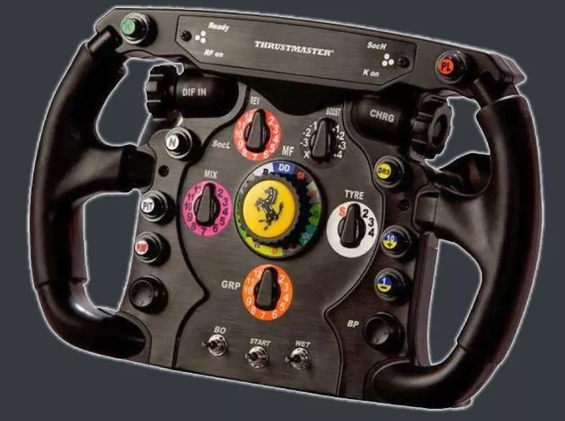 Diese von Ferrari offiziell lizenzierte Replik des Formel 1 Ferrari 2011 Rennlenkers ist eine Erweiterung zur Nutzung mit der T500 RS, T300RS, T300 Ferrari GTE und TX Racing Wheel Ferrari 458 Italia Edition.