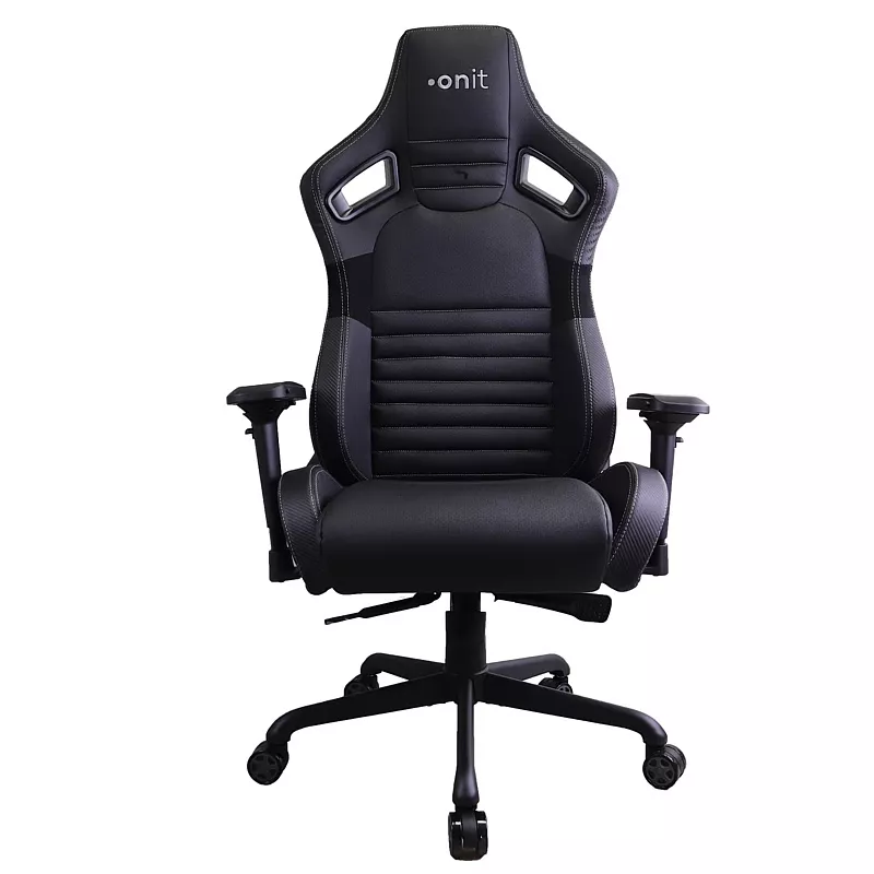 Der Gaming-Stuhl Premium von onit ist für schier endlose Gaming-Nächte genauso ideal wie für lange Arbeitstage im Büro. Für hohen Komfort sorgen die ergonomische Formgebung, der kompakte Schaumstoffkern, das angenehme und strapazierfähige Kunstleder und nicht zuletzt all die individuell einstellbaren Features. Die Höhe der Sitzfläche sowie der Neigungswinkel von Rückenlehne und Sitzfläche lassen sich je nach Bedarf einstellen. Die Armlehnen sind in Breite, Höhe, Länge und Drehung verstellbar. Die Wippfuktion fehlt genauso wenig wie die abnehmbaren Kissen aus Memory-Schaum im Lenden- und Nackenbereich. Dank einer etwas längeren Sitzfläche und einer hohen Rückenlehne passt der Stuhl auch für grosse Körpergrössen hervorragend. Die gummierten Rollen sind geeignet für Fliesen- und Teppichböden. Eine Stuhlmatte ist dennoch empfehlenswert, um die Unterlage langfristig zu schonen.