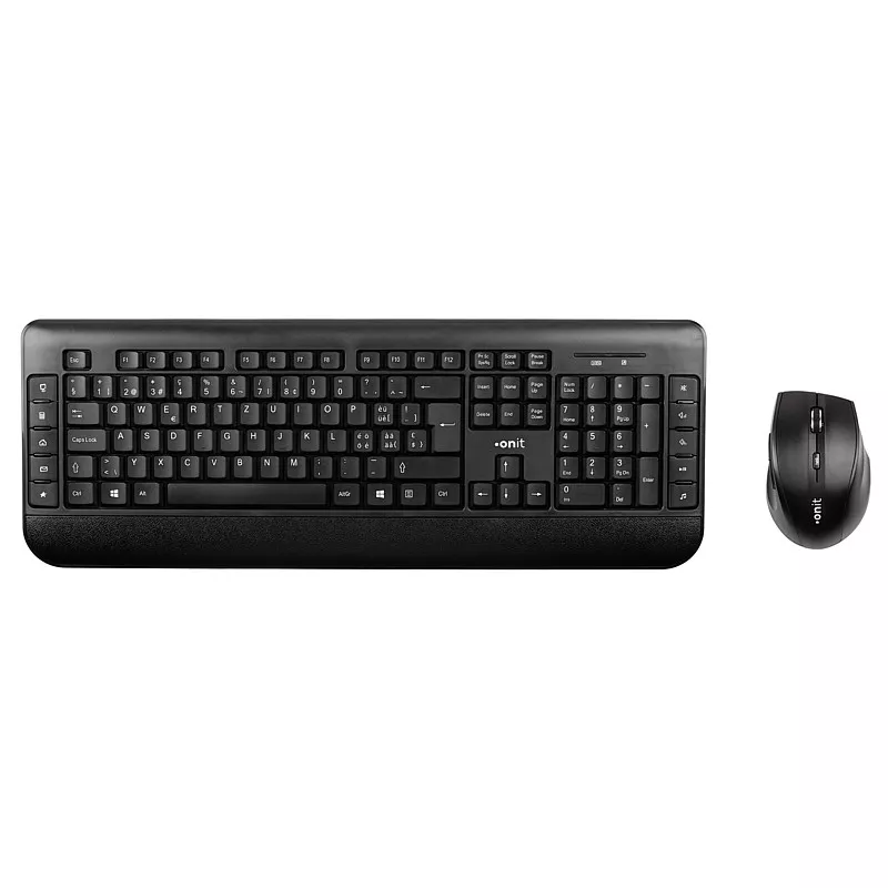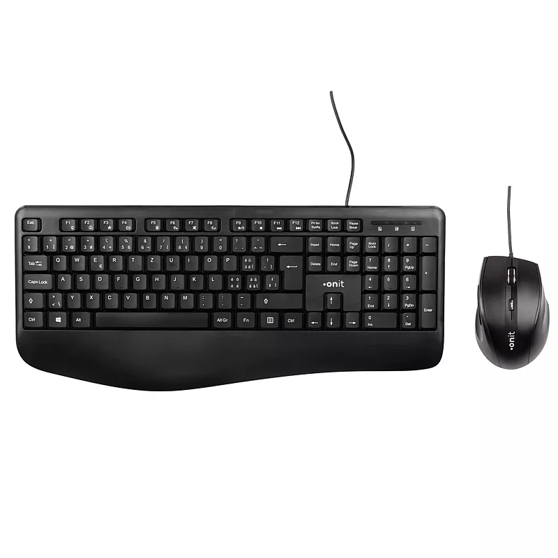 Die Onit Tastatur und Maus verbinden sich drahtlos zum mitgelieferten USB-Empfänger. So wird nur ein USB-Anschluss an Ihrem Computer belegt – und das ohne Kabelsalat. Ob im Büro oder zu Hause: Dank Handballenauflage, verstellbarem Neigungswinkel und ergonomisch geformter Maus arbeiten Sie komfortabel, auch wenn der Arbeitstag einmal länger dauert.