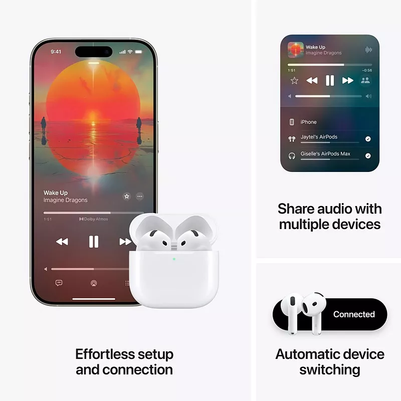 Die AirPods 4 kommen mit personalisiertem 3D Audio, das Sound überall um Sie herum platziert, einer längeren Batterielaufzeit und Schutz vor Wasser und Schweiss. Das ganze Erlebnis ist einfach magisch
