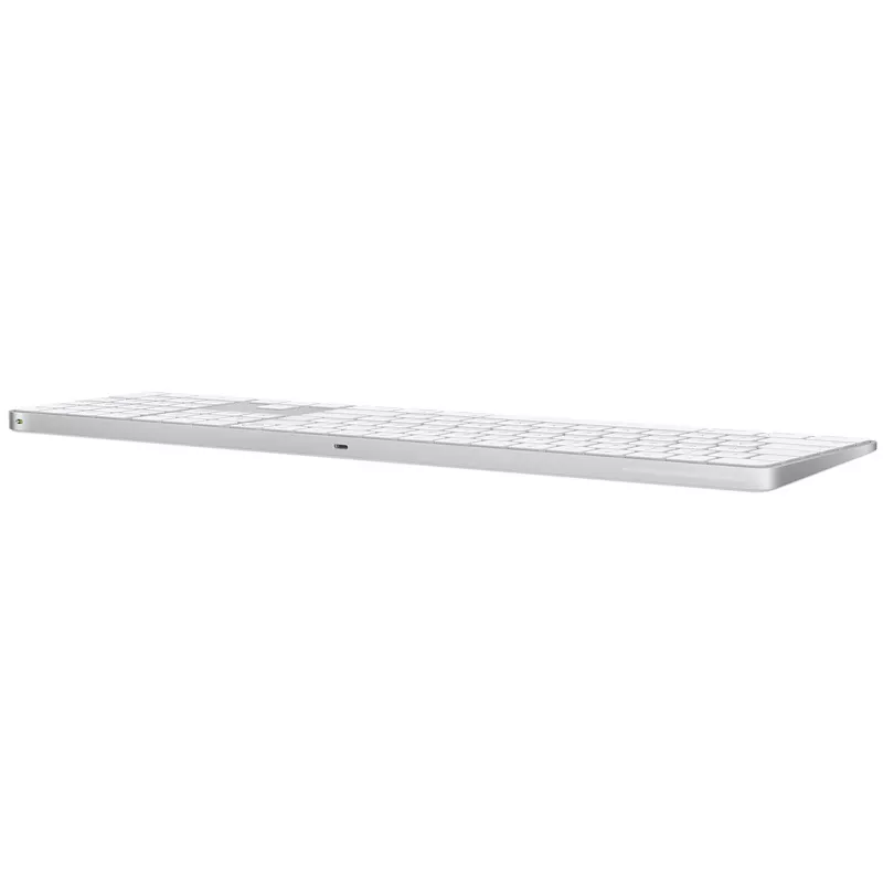 Das Magic Keyboard mit Touch ID von Apple lässt sich per Bluetooth-Verbindung kabellos mit Ihrem Mac-Computer oder iPad nutzen. Über das mitgelieferte USB-C-Kabel wird der integrierte Akku aufgeladen, welcher innerhalb von zwei Stunden vollständig aufgeladen ist. Bei voller Akkuladung lässt sich die Tastatur bis zu einem Monat lang einsetzen, doch auch nur eine Minute Ladezeit liefert ausreichend Energie für eine Stunde Arbeitszeit. Die eingebaute Touch ID Taste ermöglicht eine schnelle und einfache Authentifizierung für sichere Logins und Einkäufe. Der Ziffernblock ist ausserdem perfekt für Tabellen und Finanzanwendungen.