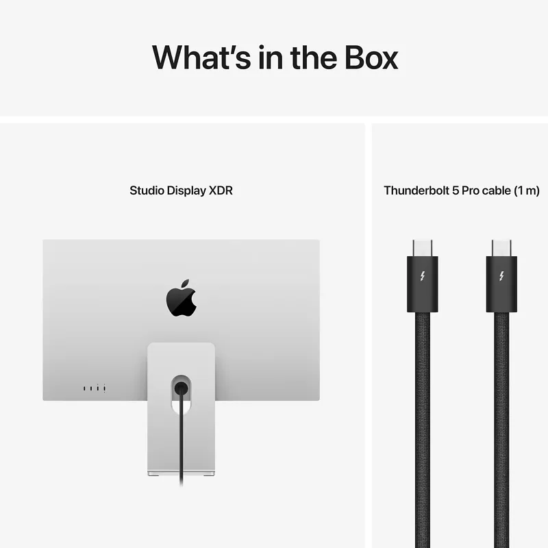 Das Studio Display XDR hat zwei leistungsstarke Thunderbolt 5 Anschlüsse, um Ihren Mac, Highspeed Zubehör oder zusätzliche Displays anzuschliessen. Und über die zwei USB-C