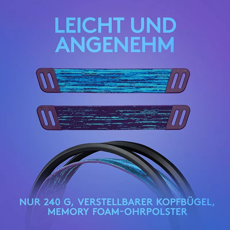 ![]() | Komfortabler Kopfbügel mit Federung, Wende-Kopfband und weichen Ohrpolstern aus Memory Foam |