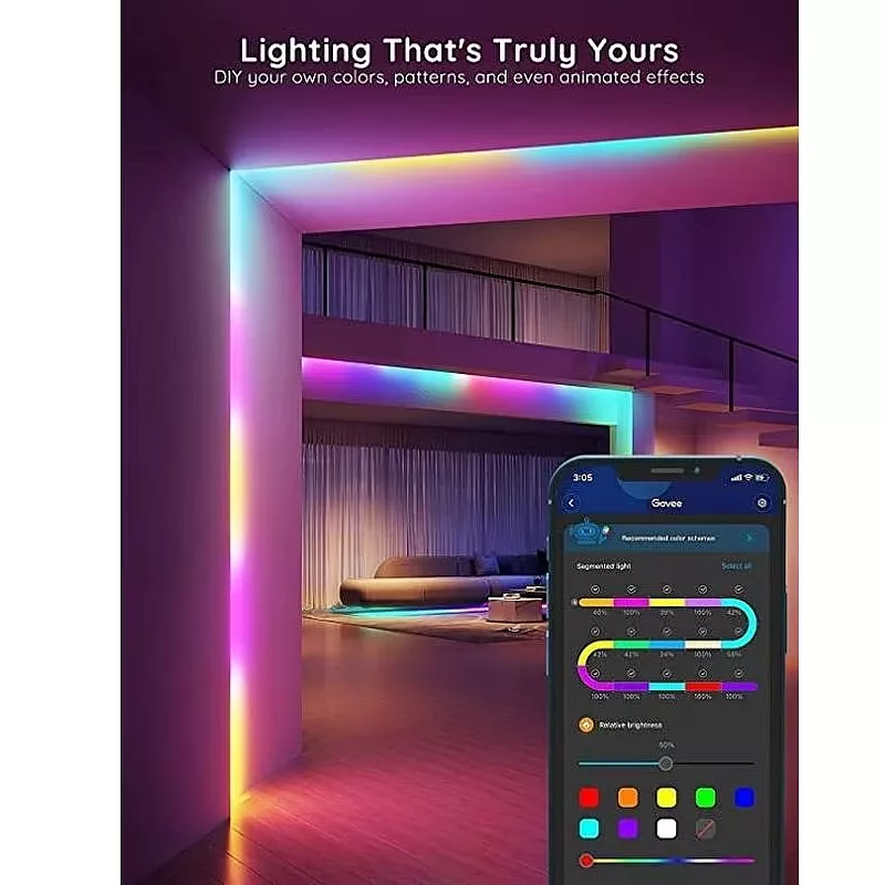 Verschönern Sie jeden Raum in Ihrem Zuhause mit den LED-Lichtleisten. Passen Sie Ihre Farben und Effekte per Sprachsteuerung oder mit der Govee Home App an, um sie nahtlos zu personalisieren.