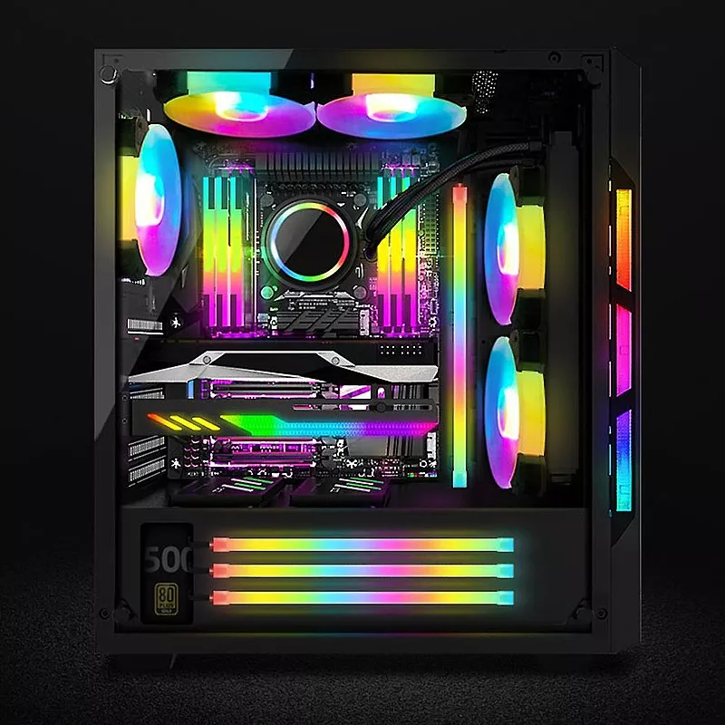 Verschiedene leuchtende Oberflächen geben Ihnen verschiedene Überraschungen. Dünne Lichtstreifen zeugen von Hierarchie und Technik. Das Ausprobieren verschiedener Stile kann oft überraschende Lichteffektszenen erzeugen. Ausgezeichnete Kompatibilität, geeignet für 99% Chassis.