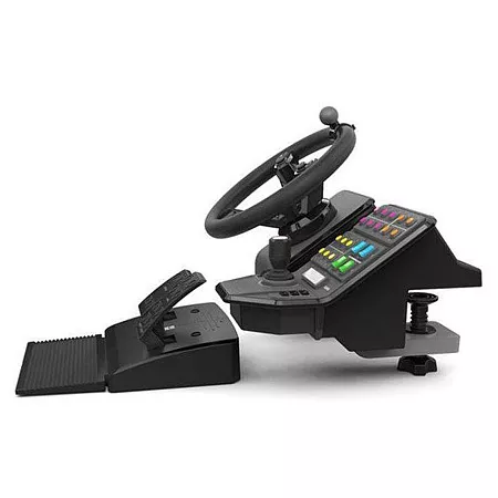 Dieses Eingabegeräte-Set entstand in Zusammenarbeit zwischen Logitech und GIANTS Software. Es ist eine massgeschneiderte Eingabelösung für Simulationen, die die Lenkung schwerer Maschinen beinhalten. Dazu gehören Bekannte Titel wie Farming Simulator, Euro Truck Simulator und Train Simulator. Es eignet sich aber auch komplexe Games anderer Genres wie Elite Dangerous. Das Bundle setzt sich aus Lenkrad, Pedale und einer Seitenkonsole zusammen und stellt Ihnen zahlreiche, frei programmierbare Bedienelemente und Tasten zur Verfügung, die Sie perfekt auf die Software abstimmen können.