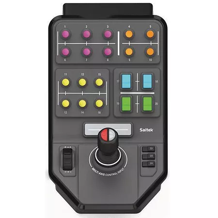 Egal ob Erntemaschine, Kran, Häcksler oder Raumschiff – mit der Seitenkonsole behalten Sie zahlreiche Befehle für die komplexesten Maschine in Griffnähe. Mit dem Stick zum Beladen können Achsen vertikal und horizontal bewegt bzw. gedreht werden, während ein Modusschalter auf dem Stick diese Befehle verdoppelt, so dass sich insgesamt sechs Achsen bedienen lassen. 25 frei programmierbare Tasten warten darauf, mit allen wichtigen Befehlen belegt zu werden. Legen Sie mit dem Drehregler beispielsweise per ´Set&Forget´ die Geschwindigkeit Ihres Fahrzeuges fest und widmen Sie sich dann anderen Aufgaben.