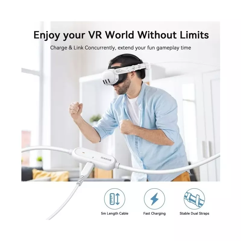 Das AMVR LC5 VR-Link-Kabel ist ein durchdachtes und praktisches Zubehör für Ihre Meta Quest 3S, Meta Quest 3 sowie frühere Modelle. Das Highlight: Sie können Ihr Headset während der Nutzung mit bis zu 36 Watt Leistung über USB Power Delivery (USB-PD) aufladen – ideal, um Ihre Spielzeit deutlich zu verlängern und ohne Unterbrechungen in die virtuelle Welt einzutauchen.