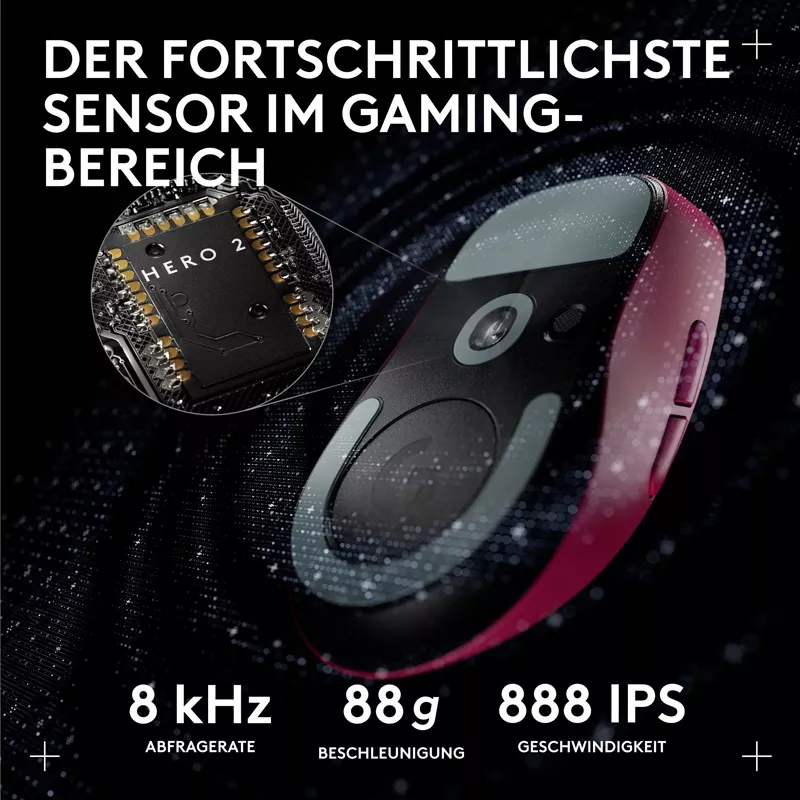 ![]() | Der «HERO 2´-Sensor bietet mikroskopische Präzision mit bis zu 44.000 dpi und bis zu 888 IPS Beschleunigung |