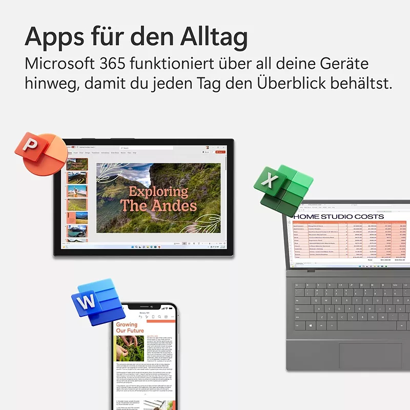 Ein praktisches Abonnement mit Premium-Produktivitäts-Apps, 1 TB Cloud-Speicher und erweiterter Sicherheit für alle Ihre Geräte