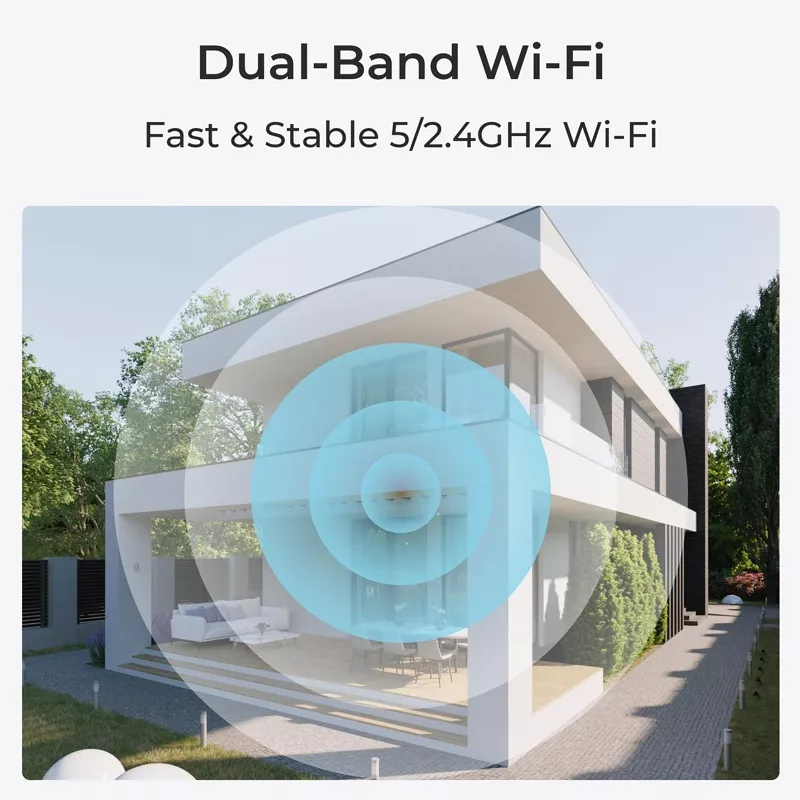 Durch das freie Umschalten zwischen den Frequenzbändern 2.4 GHz & 5 GHz (5.8 GHz) bietet die Kamera eine höhere Leistung bei der Netzwerkverbindung und einfachere Einrichtung.