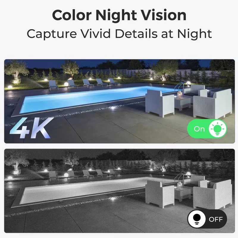 Die leistungsstarken Spotlights und Infrarot-LEDs ermöglichen in der Nacht auch scharfe und deutliche Bilder und Videos in Farbe. Von morgens bis abends wird Ihr Zuhause gut