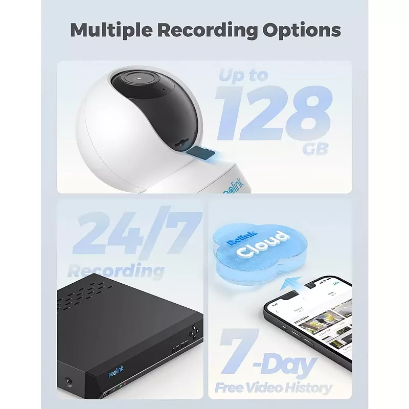 Reolink E1 Zoom zeichnet Bewegungsereignisse auf und speichert diese auf einer microSD-Karte (bis zu 128GB) ab. Mit Reolink Cloud wird diese automatisch hochgeladen, ohne den Verlust des lokalen Speichers zu befürchten.