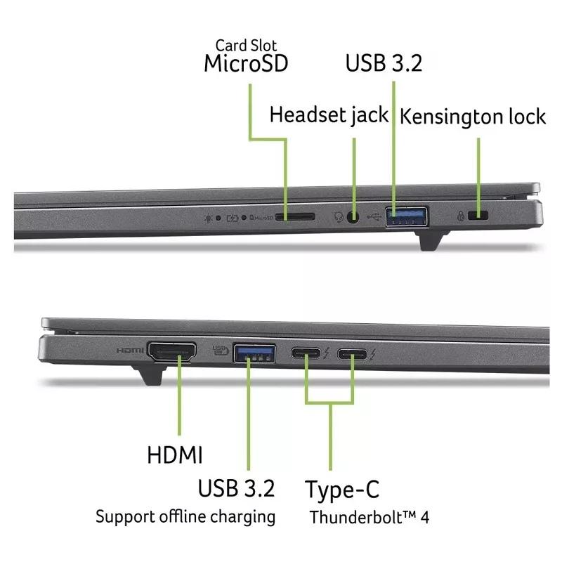 ![]() | 802.11be WLAN, Bluetooth 5.4, 2x USB 4.0Typ C (u.a. Thunderbolt 4; mit DisplayPort und PowerDelivery), 1x USB 3.2 Gen 1 (3.1 Gen 1) Typ A, HDMI, Full-HD Webcam |