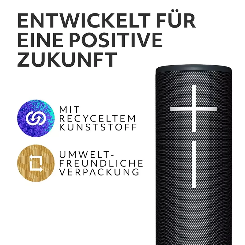 ![]() | PartyUp: Verwenden Sie PartyUp in der Ultimate Ears BOOM App, um mehrere Lautsprecher zu koppeln und das ultimative Surround-Sound-Erlebnis zu schaffen |