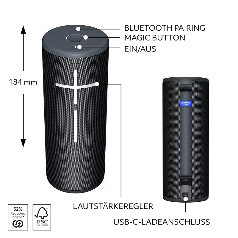 Zertifizierung und dem fantastischen Hochleistungsmaterial ist er der ultimative Lautsprecher für unterwegs, der einen satteren, bassreicheren Klang als je zuvor liefert.