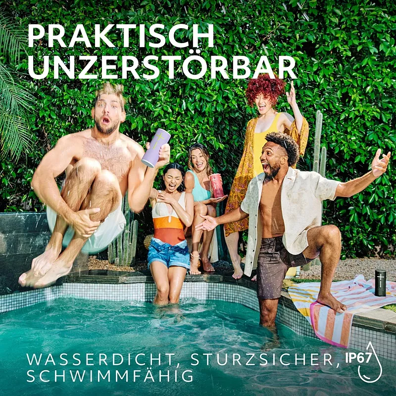 Ein kompakter, tragbarer Bluetooth-Lautsprecher mit grossem, kraftvollem und harmonischem Klang. Mit seiner One-Touch-Musiksteuerung, der wasser- und staubdichten IP67-