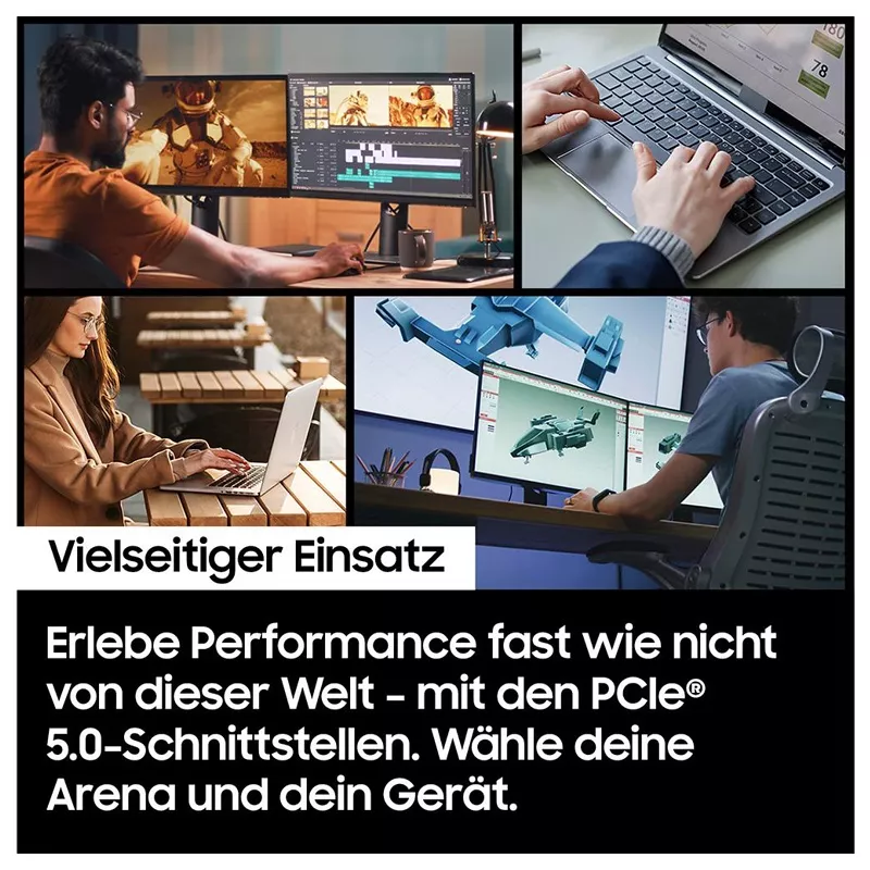Meistern Sie Videobearbeitung, 3D-Design und sogar lange Streaming-Sessions mühelos dank der PCIe 5.0-Schnittstellen. Erleben Sie moderne Performance. Jederzeit, überall und auf vielen Geräten. Wählen Sie den Speicher, den Sie brauchen mit einer Kapazität von bis zu 8 TB.