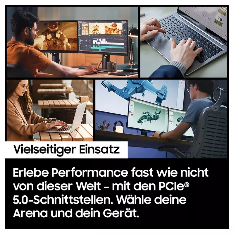Meistern Sie Videobearbeitung, 3D-Design und sogar lange Streaming-Sessions mühelos dank der PCIe 5.0-Schnittstellen. Erleben Sie moderne Performance. Jederzeit, überall und auf vielen Geräten. Wählen Sie den Speicher, den Sie brauchen mit einer Kapazität von bis zu 8 TB.