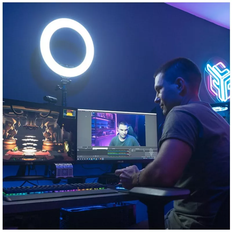 Premium-Lichtring liefert studiotaugliche Beleuchtung für all Ihre Anforderungen, perfekt für Streaming, Vlogging, Fotografie, Videoaufnahme und mehr. Wählen Sie entsprechend der für Sie perfekten Optik zwischen 4 Farbtemperaturmodi und 10 Helligkeitsstufen.