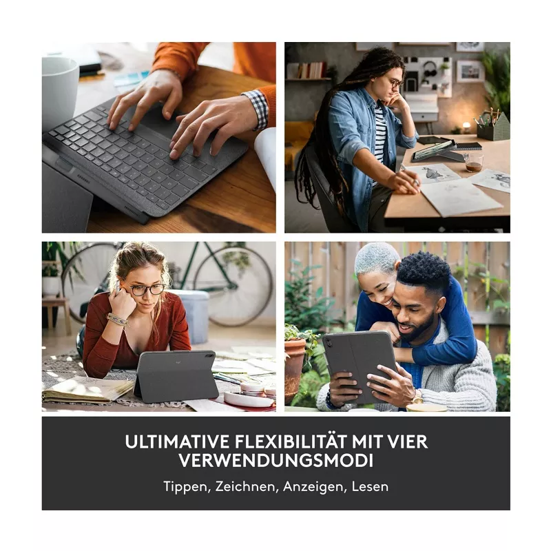 Die ultimative Ergänzung für alle Vielschreiber unter den iPad-Besitzern: Das Logitech Combo Touch kombiniert ein hochpräzises Touchpad mit einer hintergrundbeleuchteten Tastatur für Ihr iPad. Das Tastaturcover dient bei Nichtgebrauch auch als praktische Schutzhülle für das Tablet. Beim Surfen und Tippen hält sie das iPad in einer aufrechten Position, in einem Anstellwinkel von 20° bis 60°. iOS-Sondertasten erlauben schnellen Zugriff auf wichtige Funktionen wie Suchfunktion, Sprachauswahl und Multimediasteuerung. Die Verbindung zum iPad erfolgt schnell und einfach via Smart Connector.