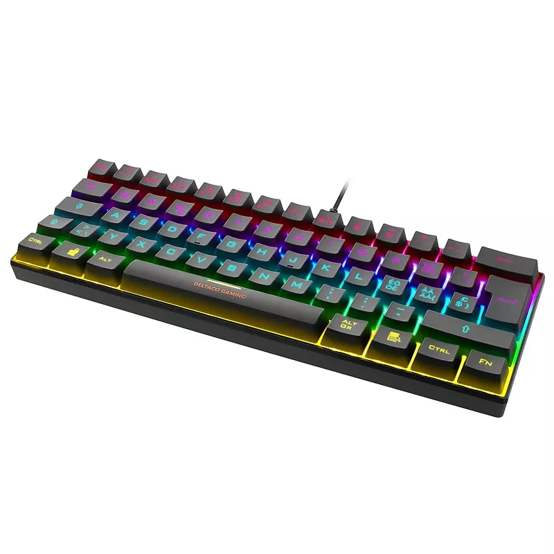 Diese Tastatur verfügt über rote RGB-Schalter, ein nordisches ISO-Layout, jedoch ein 60% iges Design, dh nur 62. Tasten. Die Leertaste verwendet keinen Jumper, wird jedoch ganz gerade gedrückt, unabhängig davon, ob Sie in der Mitte oder an der Seite der Taste drücken. Die Tastatur verfügt über insgesamt 19 Lichtmodi (Softwareeinstellungen nicht enthalten). Die meisten Farbpositionen können mit (FN +.) geändert werden. Sie können auch die Geschwindigkeit oder Lichtintensität für die verschiedenen Modi ändern. Wenn ein Geschwindigkeits- oder Intensitätsmodus die niedrigste / höchste Position erreicht, blinkt die Tastatur mit der Feststelltaste und der Windows-Taste.