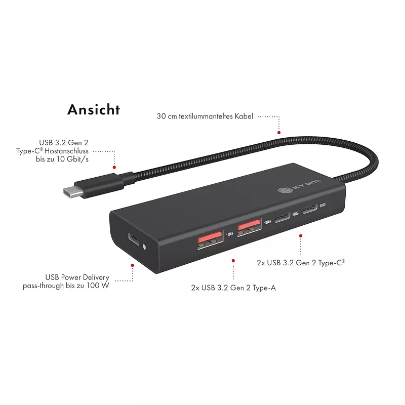 4-Port Hub mit USB 3.2 Gen 2 Type-C Anschluss und PD 100 W