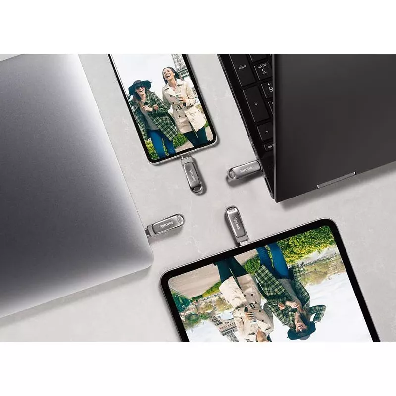 Suchen Sie nach einem Speicher für USB Type-C- und Type-A-Geräte? Mit dem SanDisk Ultra Dual Drive Luxe mit Ganzmetallgehäuse können Sie Dateien mühelos zwischen Smartphone, Tablet und Mac mit USB Type-C und Computern mit USB Type-A übertragen. So können Sie Speicherplatz freigeben, um noch mehr Fotos zu machen und auf allen Geräten anzusehen.