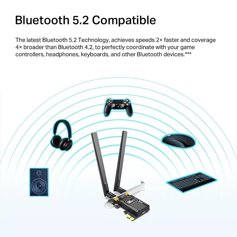 Die neueste Bluetooth 5.2 Technologie, erreicht Geschwindigkeiten 2× schneller und Abdeckung 4× breiter als Bluetooth 4.2, um perfekt mit Ihrem Spiel-Controller, Kopfhörer, Tastaturen und andere Bluetooth-Geräte zu koordinieren.