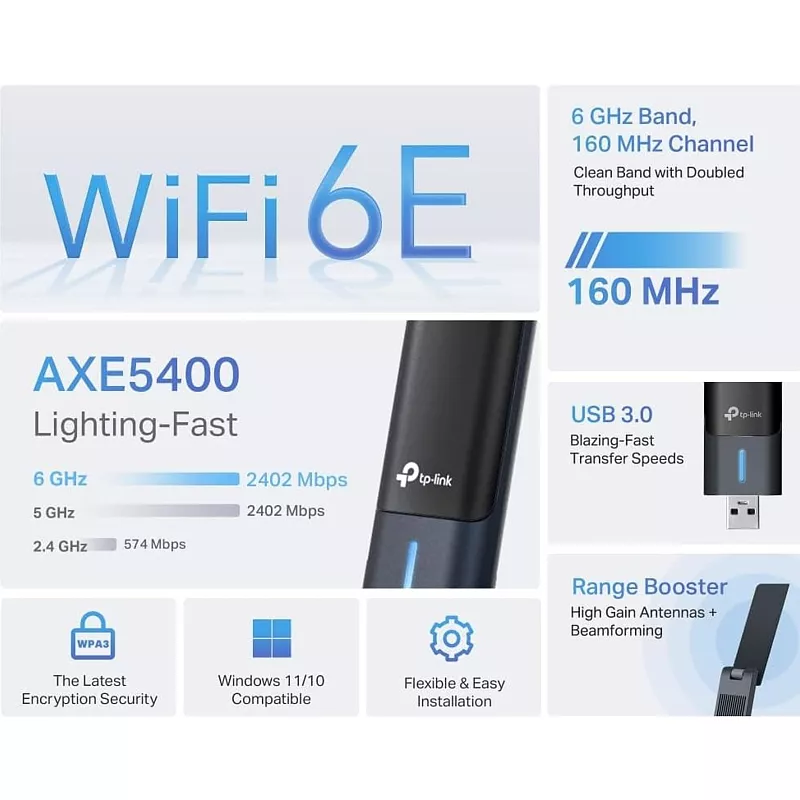 ![]() | 1x AXE5400 Wi-Fi 6E High Gain Wireless USB Adapter Archer TXE70UH |