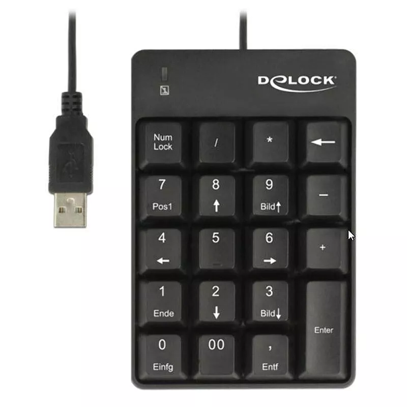 Dieser Delock Nummernblock kann einfach per USB Anschluss mit einem Computer oder Notebook verbunden werden. Er dient z. B. der Erweiterung eines Notebooks ohne Nummernblock.